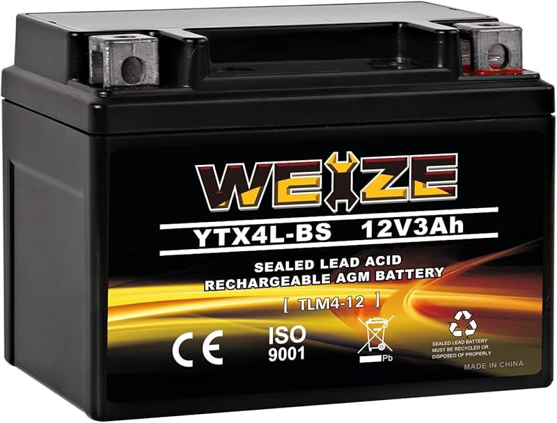 Weize YTX4L-BS High Performance-Rechargeable-Sealed Motorcycle Battery Compatible With Polaris Scrambler, Sportsman 90, Honda Scooters NQ50 Spree,Kawasaki 110 Can-Am DS70,Yamaha TTR125E/LE