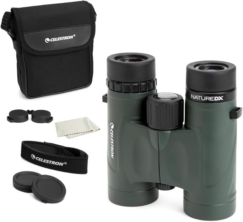 Celestron - Nature DX 8x32 Binoculars ā Ideal for Birding and Outdoors ā 32mm Objective Lenses ā Wide 7.4° Field of View ā BaK-4 Prisms ā Fully Multi-Coated ā Waterproof and Fogproof