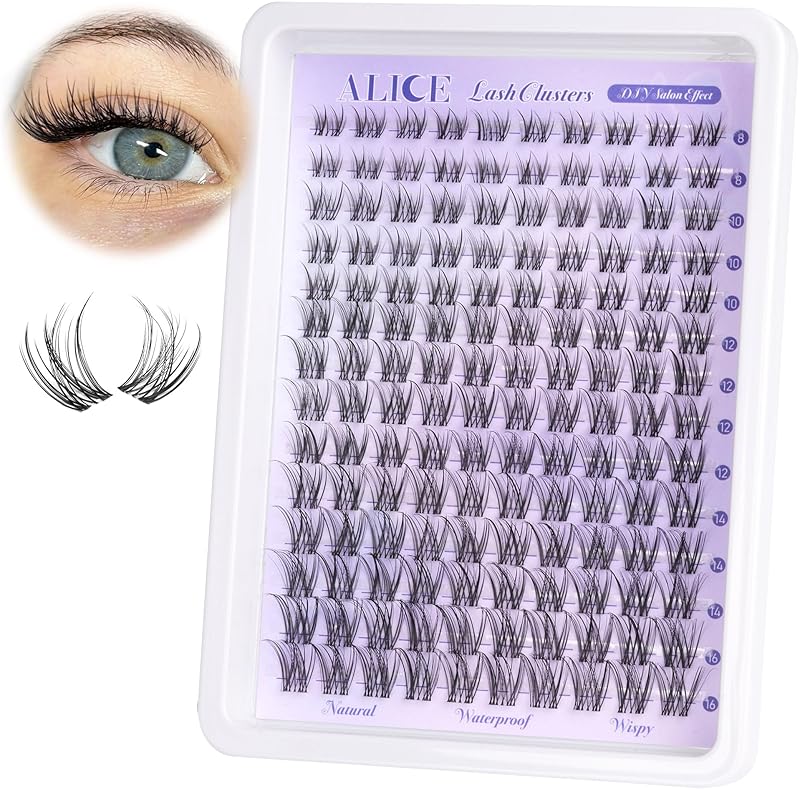 ALICE Natural Lash Clusters Lash Extensions Invisible Band Waterproof 8-16mm Cluster Eyelash Extensions Wispy Eyelash Clusters Individual Lashes Cluster Lashes