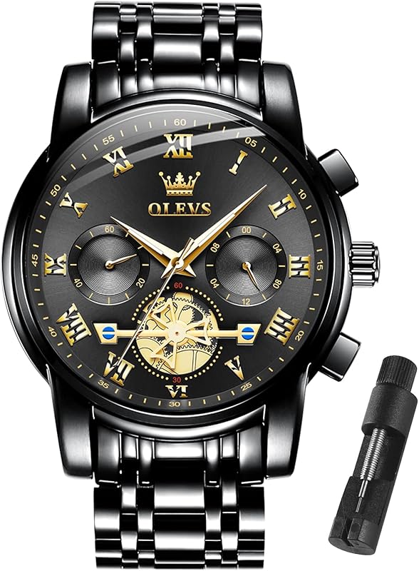 OLEVS Watches for Men with Date Luxury Big Face Waterproof Mens Wristwatch Analog Dress Two Tone Stainless Steel Man Watch Luminous Relojes De Hombre Calendar(Green/Blue/Black Dial