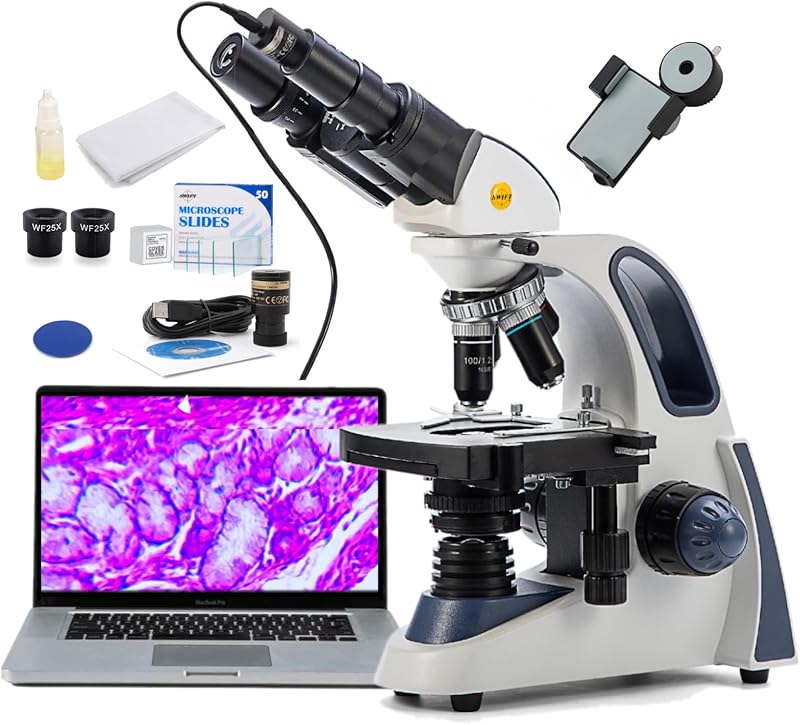 SWIFT SW380B Binocular Compound Microscope,40X-2500X with 1.3MP Camera,100pcs Microscope Slides,Microscope Kit for Students School Lab