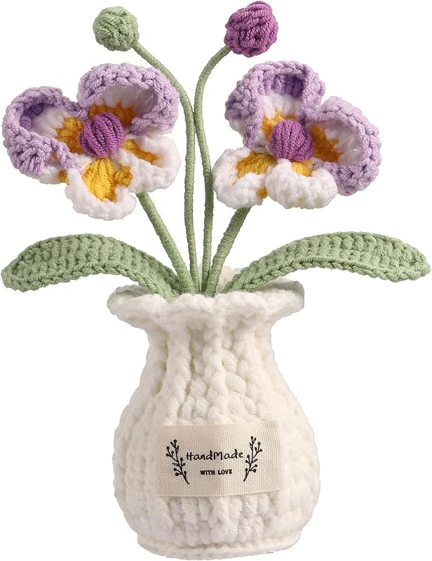 YOOJEE Orchid Crochet Flower Pot Purple Handmade Knitted Phalaenopsis Desk Decor for Home Office