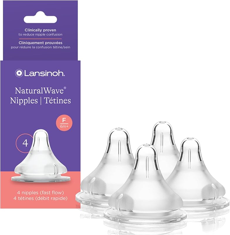 Lansinoh NaturalWave Baby Bottle Nipples, Fast Flow, Size F, 6+ Months, 4 Count – 100% Soft, Durable Silicone, Made Without BPA BPS, Anti-Colic, Supports Baby’s Developing Mouth and Teeth