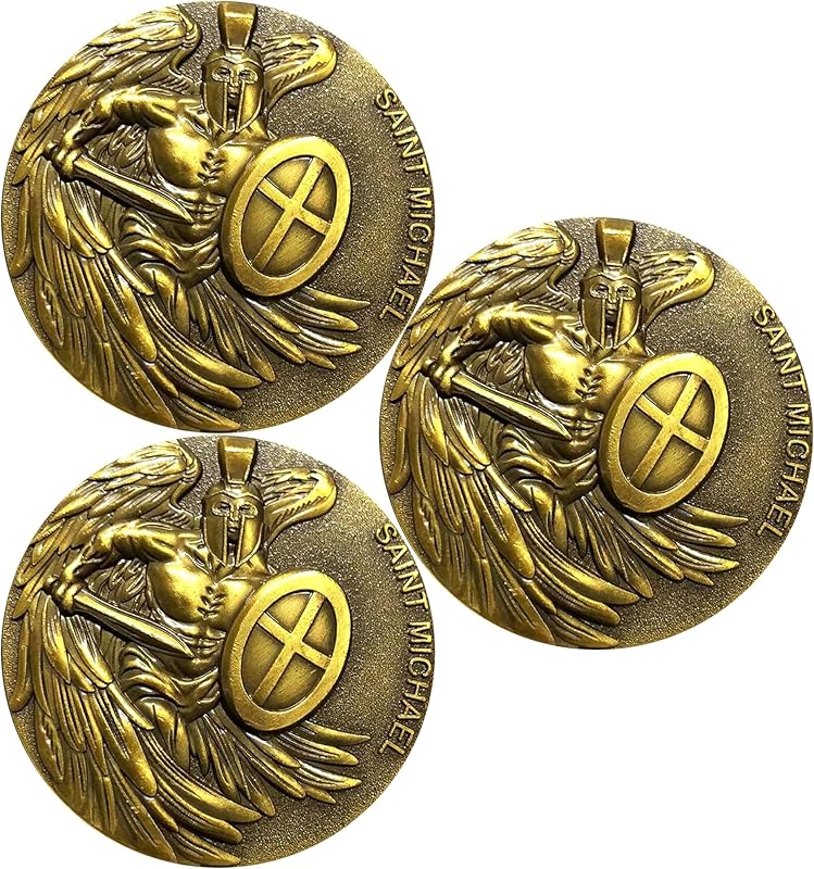 CYOUNG Saint Michael Guardian Angel Challenge Coin - Divine Protection Bible Verse Pocket Token Military Gift (Pack of 3)