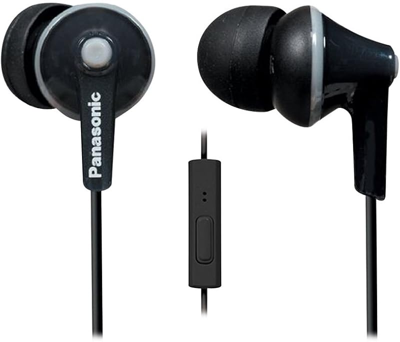 Panasonic ErgoFit Wired Earbuds With Microphone, 3.5mm Jack In-Ear Headphones Corded, Wired Headphones With Microphone & Controller, Custom-Fit Earpieces, for Phones & Laptops, RP-TCM125-K (Black)