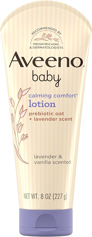 Aveeno Baby Calming Comfort Moisturizing Body Lotion with Relaxing Lavender & Vanilla Scents, Non-Greasy Baby Lotion, Natural Oatmeal & Dimethicone, Paraben- & Phthalate-Free, 8 fl. oz