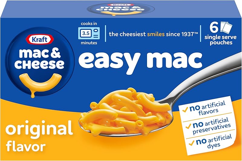 Kraft Easy Mac and Cheese, 6 Packets, for Easy Dinner or Dinner Sides, Original Flavor, No Artificial Flavors, Preservatives or Dyes, 12.9 oz