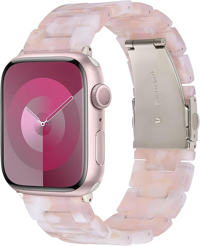 V-MORO Resin Bands Compatible with Apple Watch Series 11/10/9/8/7 41mm/42mm Fashion Dressy Lightweight Cute Strap with Starlight Buckle for iwatch Series SE/6/5/4/3/2/1/SE3(Floral Pink,42mm/41mm/40mm/