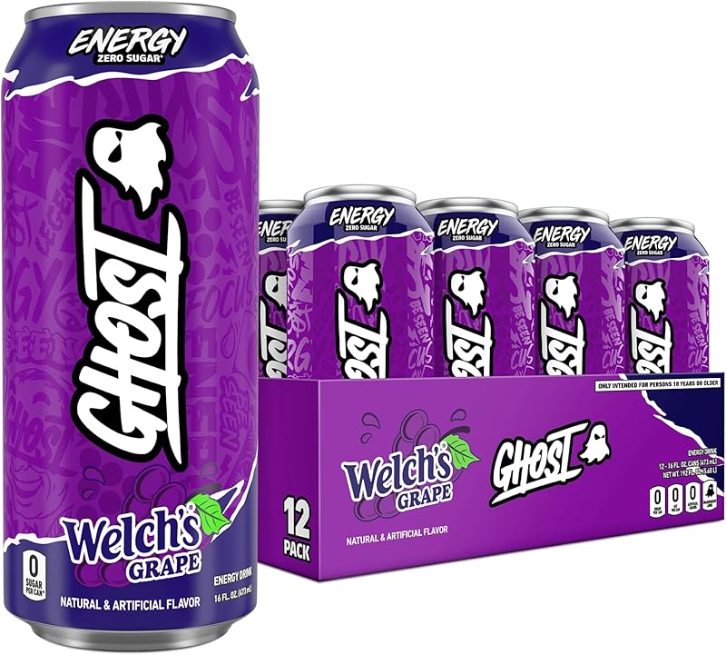 GHOST Energy Drink - 12-Pack, Welch's Grape, 16oz Cans - Energy & Focus & No Artificial Colors - 200mg of Natural Caffeine, L-Carnitine & Taurine - Gluten-Free & Vegan