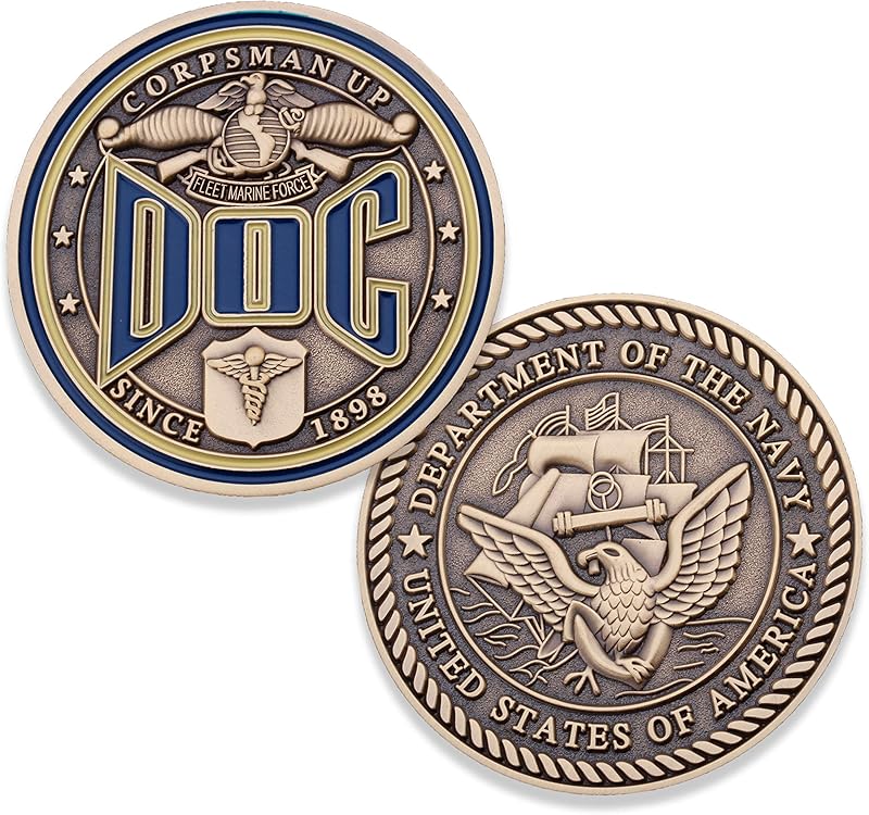 Coins For Anything, Inc Navy Corpsman DOC Challenge Coin - USN Corpsman Up Military Collectable Coin - Officially Licensed USN Challenge Coin - Designed by Military Veterans