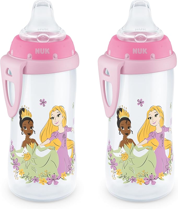 NUK Active Sippy Cup, 10 oz, 2 Pack, Disney Princess, BPA-Free, Soft Spout, Spill-Proof Cup