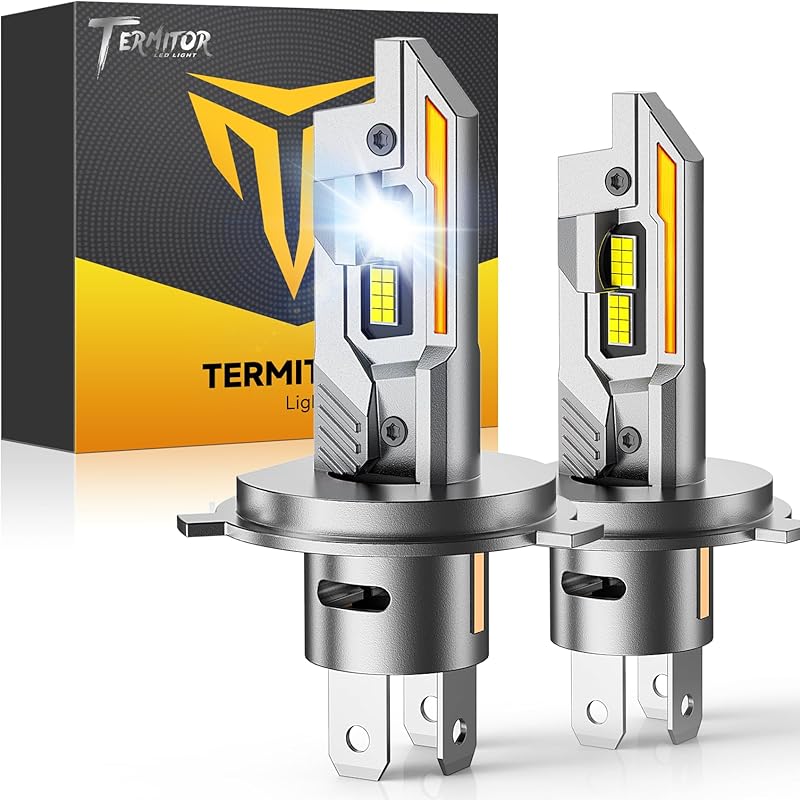 Termitor Upgraded H4/9003/HB2 Bulbs, 50,000LM 10X Ultra Bright, Real 1:1 Mini Size, 6500K Cool White H4 9003 Fog Lights Bulb with Cooling Fan, IP68 Waterproof, Plug and Play, Pack of 2