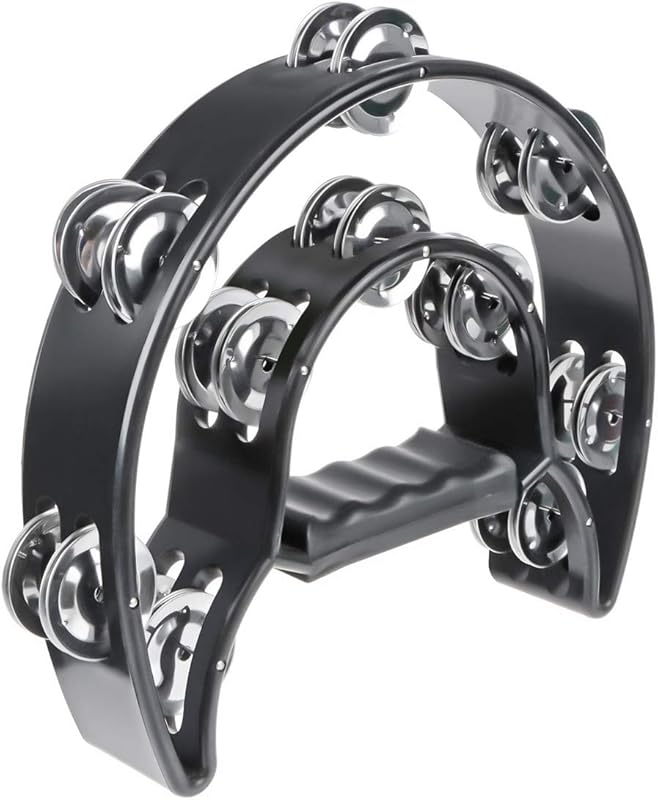 Half Moon Musical Tambourine Double Row Metal Jingles Hand Held Percussion Drum Multicolor for KTV Party with Ergonomic Handle Grip (Black)
