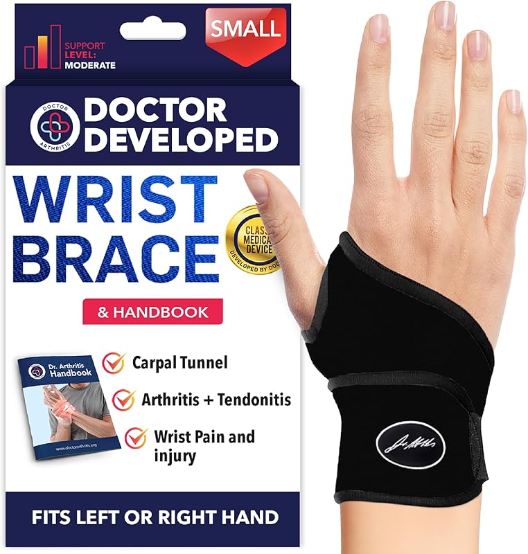 Doctor Developed Wrist Brace - Wrist wrap for Carpal Tunnel Arthritis,Tendonitis, Hand Support - Ideal for Fitness, Weightlifting - Handbook included (Black (Small- 1 Pack), Wrist Brace)